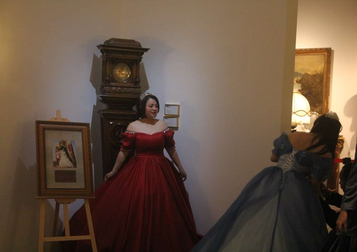活动现场,市民和游客身着宫廷服饰,先后观赏了钢琴独奏、宫廷舞蹈表演,并体验欧式宫廷舞会、品鉴匈牙利国酒托卡伊贵腐酒,沉浸式感受独特的“宫廷盛宴”。不少摄影爱好者还进入展厅,观赏风靡半个多世纪的匈牙利茜茜公主的照片、画像、生活用品等,并拍照留念。